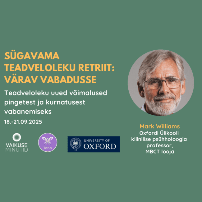 Uurime retriidil ideid ja meditatsioone Mark Williamsi viimasest, värskelt ka eestikeelsena ilmunud raamatust “Sügavam teadvelolek. Uus tee rahuni kaootilises maailmas”. Seega on see raamat hea sissejuhatus, kui soovid retriidiks ette valmistuda.